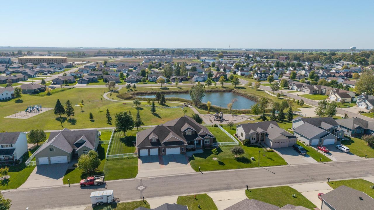 Spacious and Well-Maintained 6-Bedroom Home with Stunning Views! This beautifully maintained two-story home offers exceptional space, comfort, and thoughtful design with 6 bedrooms and 4 bathrooms. The main floor features a desirable primary suite with a private bath, a bright living room with a cozy fireplace, and an open kitchen and dining area perfect for everyday living and entertaining. You'll also find a convenient main floor laundry, a large mudroom with lockers, a sun-room filled with natural light, an office, and newer flooring throughout much of the home.Upstairs includes three generously sized bedrooms, each with newer flooring, and a full bathroom. The finished basement provides even more living space with two additional bedrooms, a bathroom, a spacious family room with a fireplace and pool table, an exercise room, a large utility room, and plenty of storage. Wide stairwells throughout make moving between levels easy and comfortable, and a walk-down staircase from the garage adds convenient basement access.The impressive finished and heated garage is approximately 2,000 square feet, featuring four stalls across, one double-deep bay, and a walk-up to overhead storage. Sitting on a beautiful double lot, the fully fenced backyard is perfect for relaxing or entertaining, complete with a patio and gazebo overlooking a park and pond. Moorhead Public Schools busses pick up in the neighborhood also.