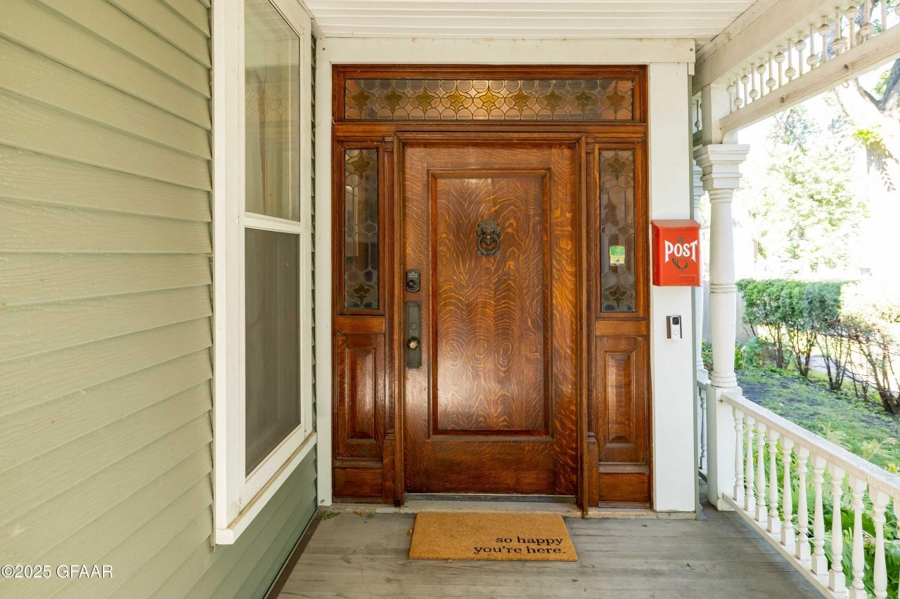 Step into a piece of Grand Forks history. Known locally as the ''Cream of Wheat House,'' this stunning Queen Anne style Victorian home blends timeless character with thoughtful updates, offering a rare opportunity to own one of the community's most recognized residences in the Near Southside Historic District. Enjoy walking to downtown restaurants, coffee shops, and boutiques or take a quiet stroll on the local Greenway path.From the moment you arrive, the stately exterior and inviting front porch set the tone. Inside, you'll find architectural details, warm hardwood floors, rich millwork, soaring ceilings, sun-filled spaces, stained glass windows, three fireplaces, and generous room sizes. The kitchen has been beautifully modernized while maintaining the home's original charm, and the dining and living areas are perfect for both everyday living and entertaining. The back office provides a stunning workspace or formal living room.Upstairs, four spacious bedrooms and updated baths provide comfort and spa-like living. The home also offers cozy nooks, walk up attic, built-ins, and unique features that showcase its one-of-a-kind character. Outside, enjoy a private fenced backyard, covered back and side porch area, and mature treesan ideal space to relax or gather with family and friends. A newer oversized, insulated, and heated garage with a power gate to the driveway ties the home, yard and garage together for easy living. The metal siding, newer architectural shingles and gas heat system protect the home from the elements and the two air conditioning systems keep the home cool all summer long.With its blend of history, elegance, and modern livability, the Cream of Wheat House is more than a homeit's a landmark. Don't miss this chance to make it yours.