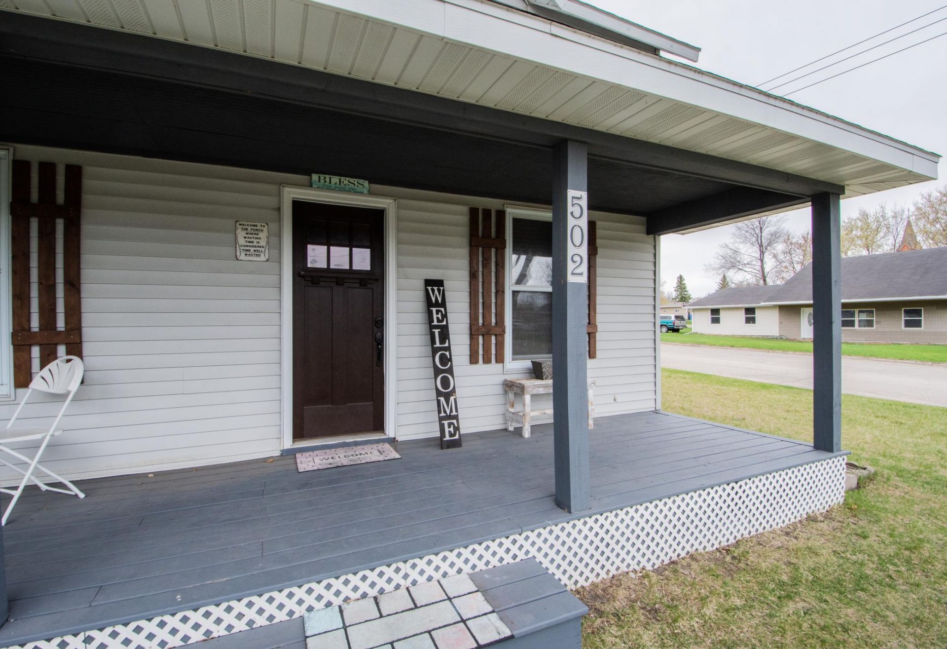 Fantastic two story home on corner lot with wrap around front porch! Oversized detached two stall garage, large, fully fenced yard with white poly fence. Inside, you'll find a cozy living room, formal dining and full bath. Updated kitchen with stainless appliances, and 1 bedroom on the main level. 3/4 bath and laundry on main in mudroom. Two more nice sized bedrooms upstairs. Garage has an extra insulated stall/space with it's own overhead door for a workshop, home gym, etc. Schedule your showing today!