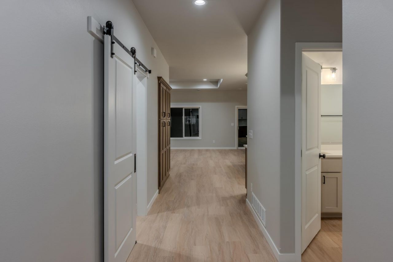Welcome Home! Enjoy cozy evenings in the inviting living room, and appreciate the thoughtful touches like the barn door leading to a convenient mudroom and laundry area. The primary suite offers a relaxing retreat with a well-appointed bathroom, complete with double sinks for added functionality. With its modern features, practical layout, and high-quality finishes, this home offers comfort and style all on one level - perfect for easy living. Schedule a showing TODAY!